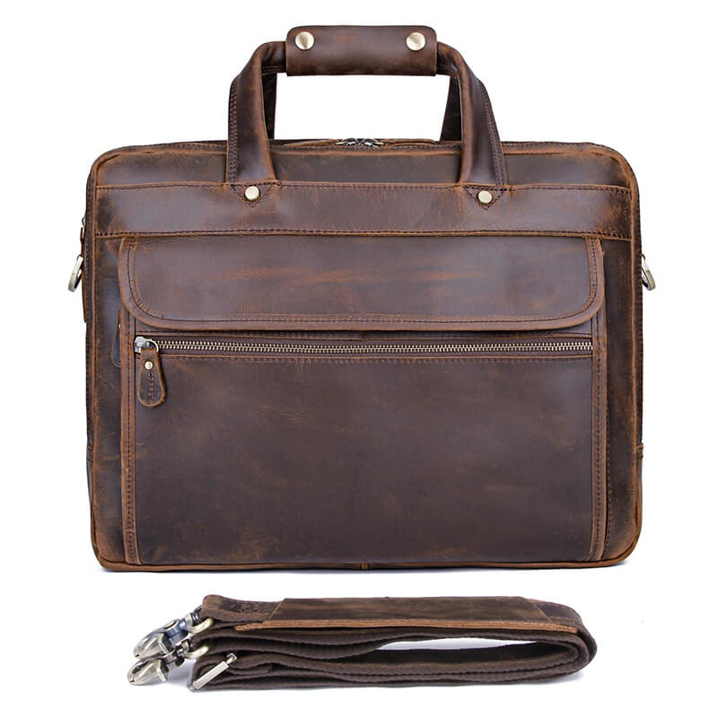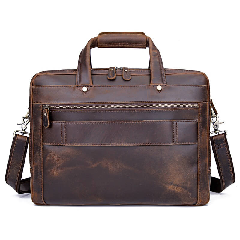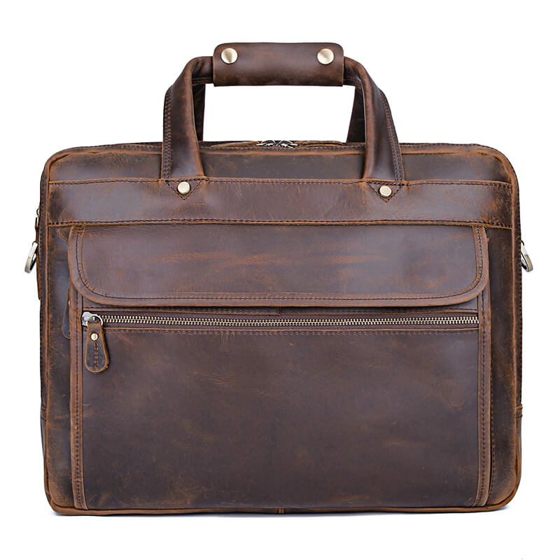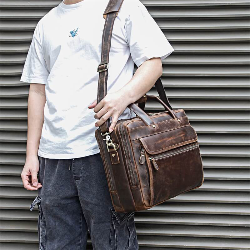 This mens brown leather work bag is made of high-quality full-grain leather with a stylish and functional design.