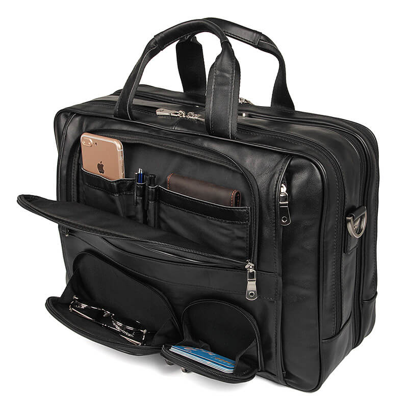 This computer bag has a multi-layer storage bag that can store personal items such as phones, headphones, wallets, mobile power, etc.