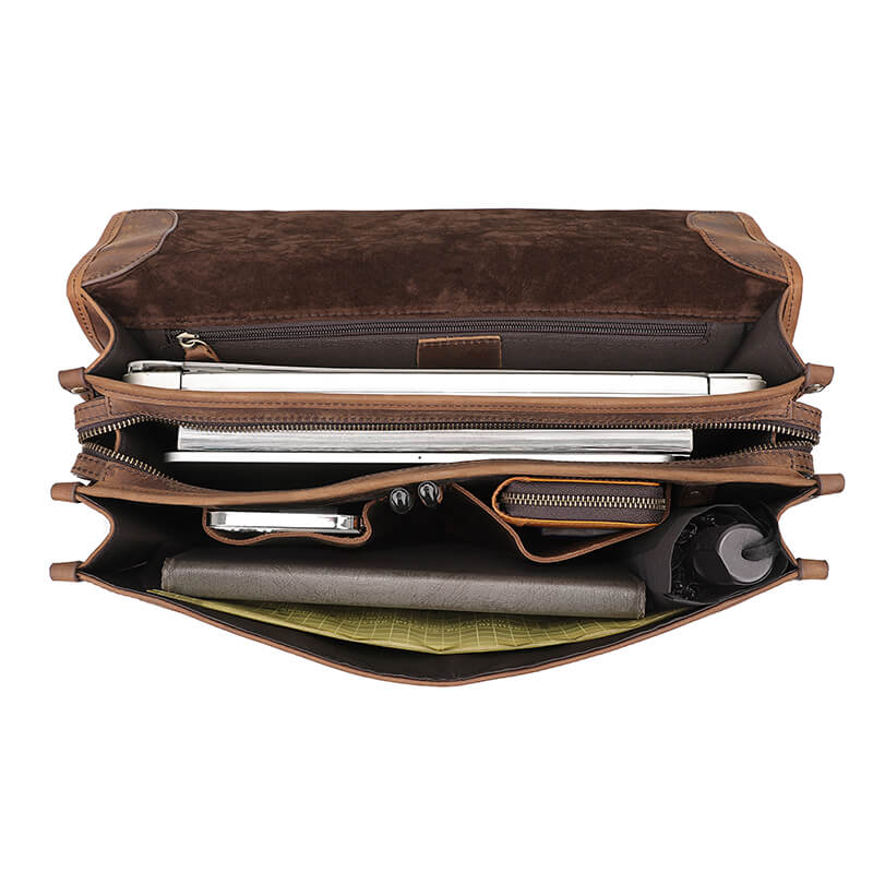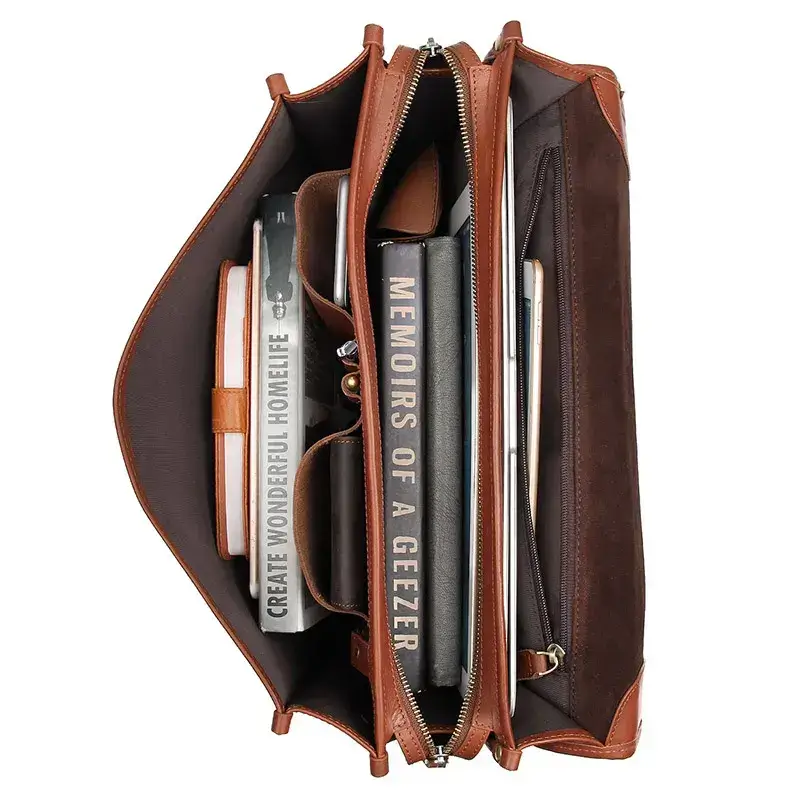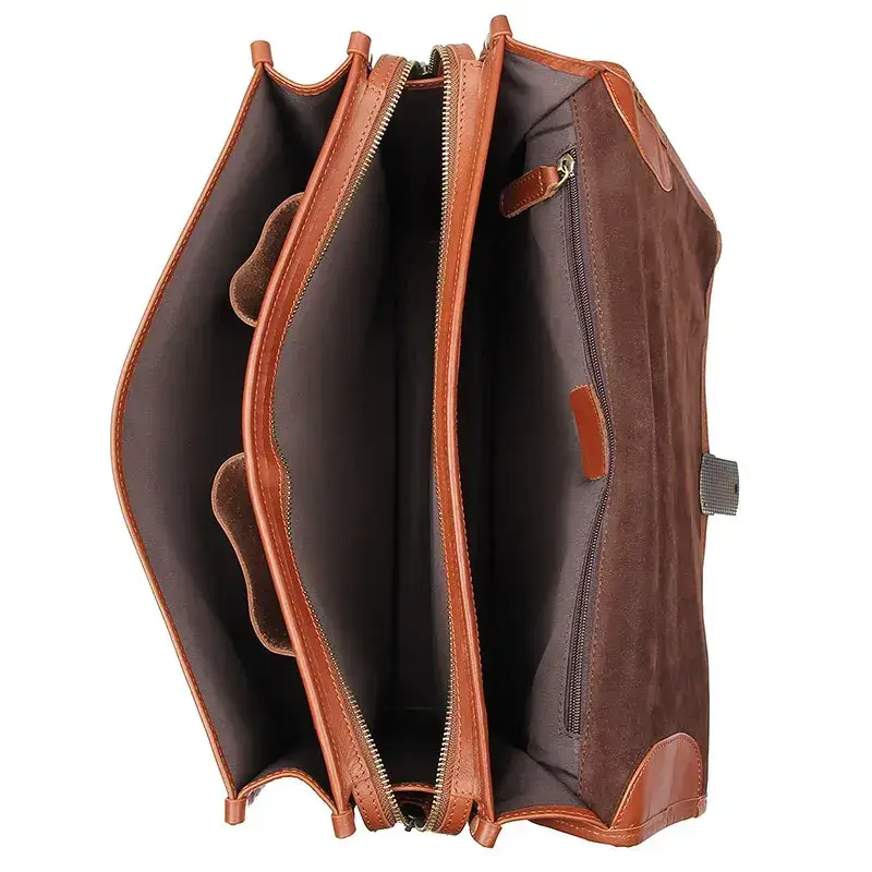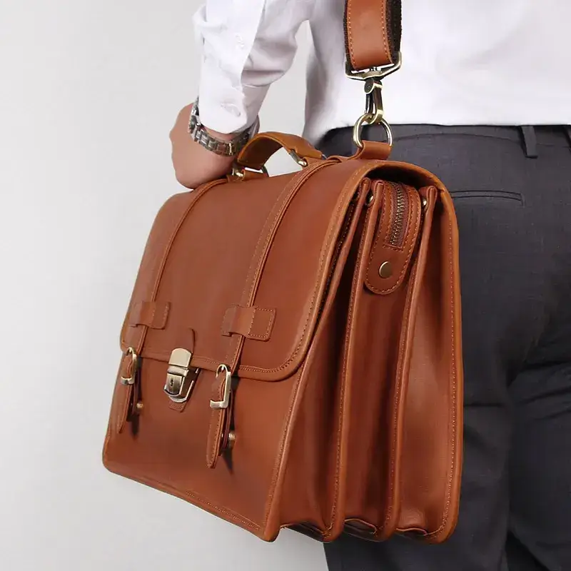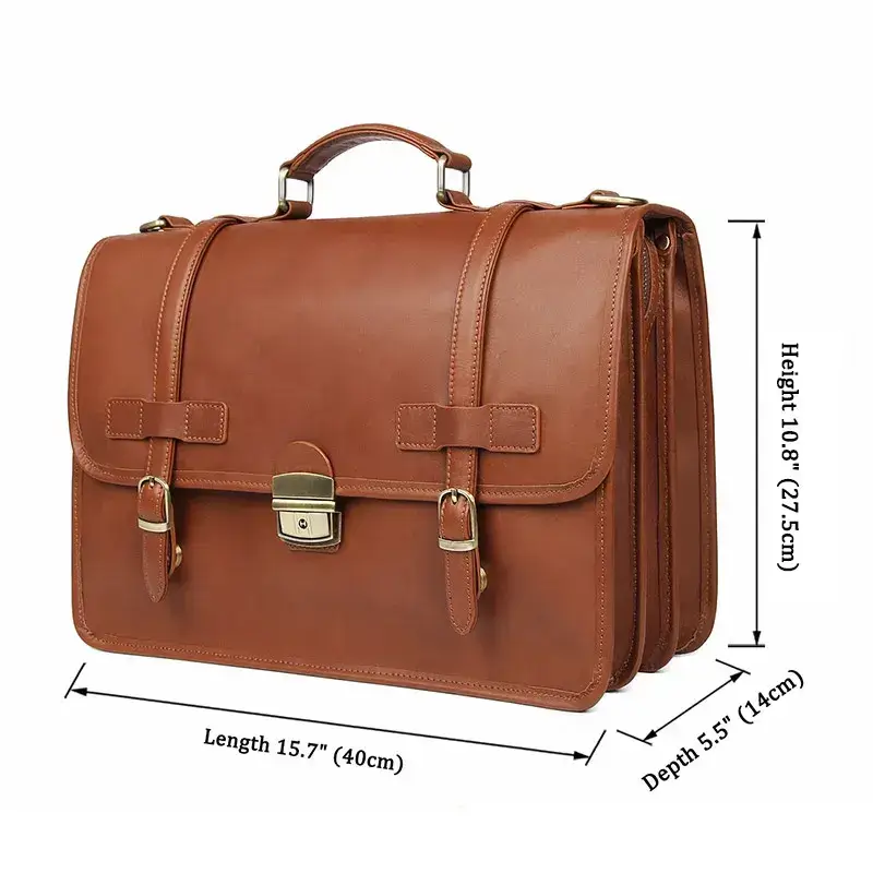 This work bags leather is made of genuine leather, fashionable, durable, and waterproof.It can accommodate a 14-inch laptop, iPad, clothes, documents, phone, wallet, glasses, mobile power, keys, etc. This briefcase has a very reasonable layout, multi-layer design, and tidy storage of items. Fashionable and stylish, simple for gentlemen, and suitable for daily work and travel.